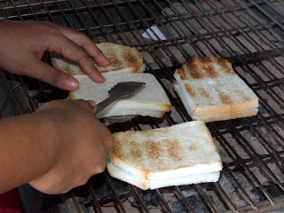 Kluang Rail Coffee09 ■ 马来阿兄在炭烤着面包。